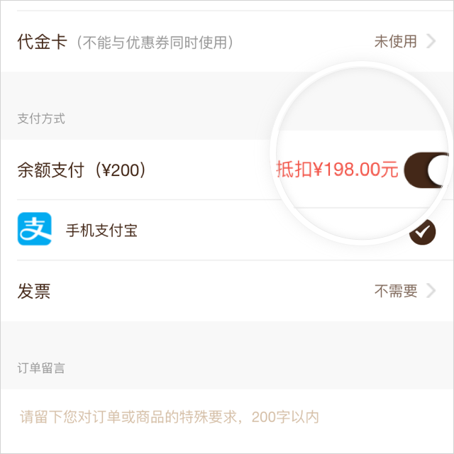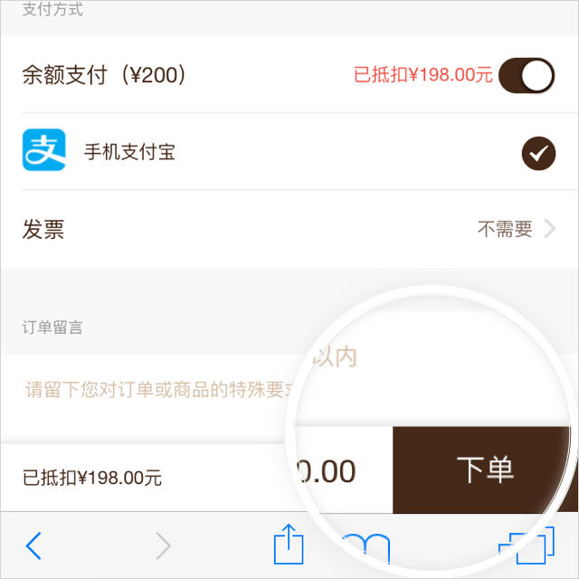 Step6 - 选购商品进入下单页面,打开“余额支付”